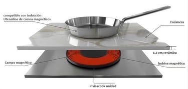 El Invisacook se instala debajo de su mostrador, utilizando su avanzada tecnología de inducción Invisa, funciona a través de la superficie sólida de su mostrador para calentar los utensilios de cocina de manera efectiva. También crea un espacio adecuado para cocinar donde tradicionalmente no parece haber uno. Además, el sistema Invisacook no genera ruido directo, sigue siendo seguro para usar como espacio de mostrador tradicional cuando no está cocinando.